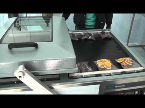 Henkelman Falcon 2 70 }}- Pakovanje sa gasom: sušeni paradajz, sušena jabuka, suva šljiva na vakuum pakerici sa inertnim gasom Henkelman Falcon 2-70.